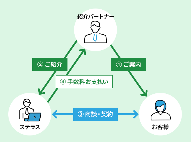 ご紹介いただいた企業様へは弊社が商談を行います。